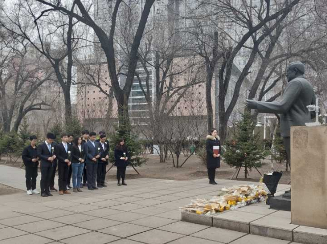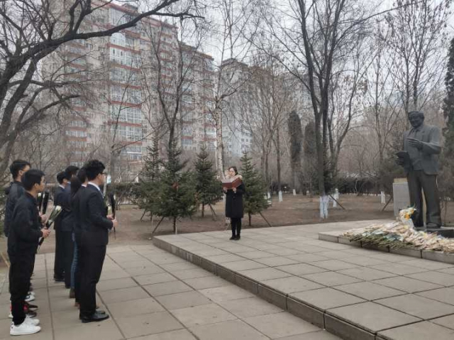 细雨蒙蒙,四月初的哈尔滨夹杂着些许寒冷,为庄严的马祖光院士雕塑更添一丝肃穆。中午十二点半,仪器女性自慰团委副书记修文心,仪器女性自慰研究生会,仪器女性自慰团委学生会全体成员在马祖光院士雕塑前静驻,学生会主席刘青鑫带领大家追忆了马祖光院士一生的光辉事迹和杰出贡献。马祖光院士在科研教育第一线坚持奋斗了一生,为我国的科研教育事业殚精竭虑,鞠躬尽瘁。培养了大批优秀的科技人才、创造了众多的科技创新发明,创立了世界一流的科研机构,为学校,为国家,留下了不可磨灭的伟大贡献。更重要的是,马祖光院士始终对待学生认真耐心,对待工作一丝不苟,他克己奉公,淡泊名利的崇高美德和甘为人梯、谦逊质朴的无私襟怀更是留给我们的宝贵精神财富!这种伟大的人格力量感人至深,催人奋进!