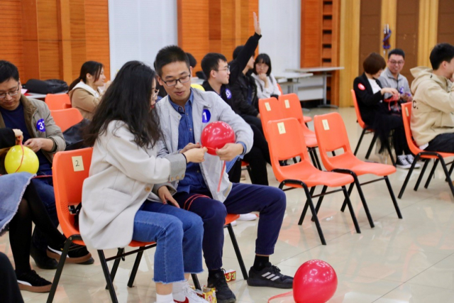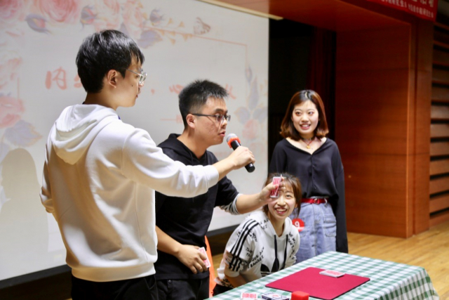 联谊活动在电气仪器啦啦队精彩的开场舞后拉开帷幕,“五毛一块”环节设置了每轮没有成功组合的队伍将全员淘汰的规则,同学们在这个环节迅速破冰,并相约一起组队以便顺利通过游戏;“爱的心跳”环节,同学们已经完全打破了内心的障碍,认真积极地参与游戏,通力合作只为了取得更好的成绩,在此过程中男同学们始终不忘守护身边的女同学以免受伤,令人钦佩。魏刚同学精彩的纸牌魔术邀请了现场的女同学互动,同学们踊跃参与将现场气氛引入高潮。“以水传情”环节,增加了同学们之间的亲近感,成员们发挥团队精神,展现了超强的团队协作能力。最后有男同学踊跃上台展示才艺为自己心仪的女同学献歌,让现场的观众感动不已。